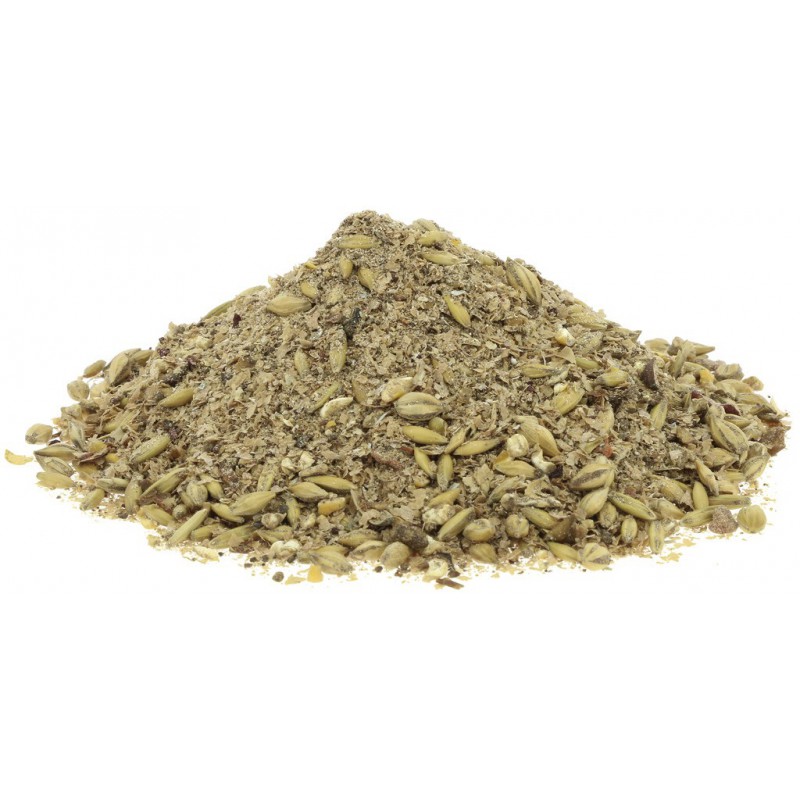 Composição: 27,63 % farelo de trigo, 20,19 % cevada (laminada), 15,04 % aveia negra, 11,26 % milho em grão (laminado), 6,58 % polpa de maçã, 8,46 % farinha de linhaça, 3,0 % beterraba vermelha (seca), 2,82 % melaço de beterraba sacarina, 0,5 % pedaços de maçã, 0,5 % chips de cenoura, 1,58 % carbonato de cálcio, 0,4 % chips de banana, 0,3 % escaramujo, 0,27 % bagaço de cerveja, 0,2 % levadura de cerveja (inactivada), 0,43 % cloruro de sódio, 0,49 % fosfato monocálcico*.