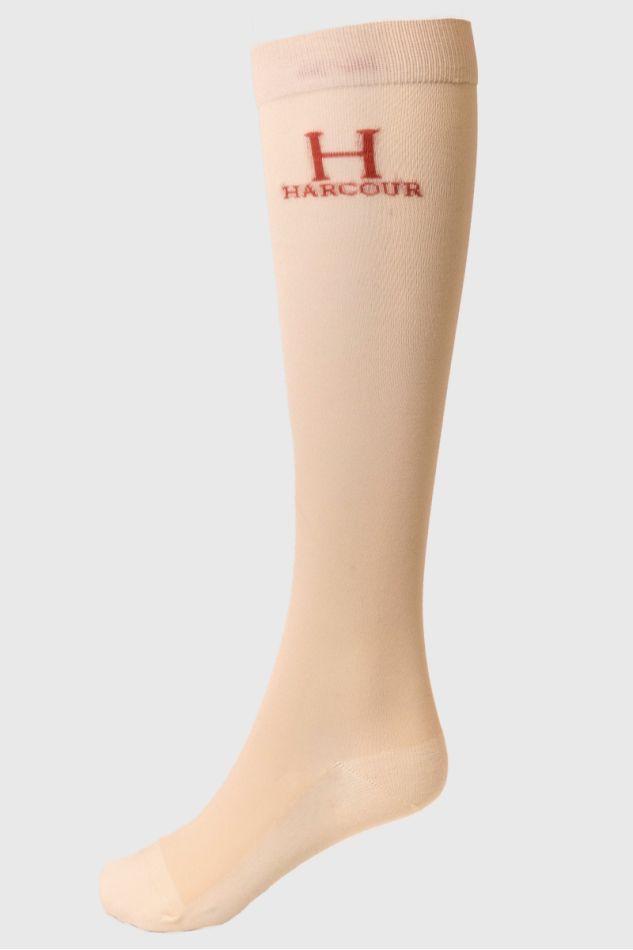 O algodão é reforçado no pé e inclui o logotipo Harcour no topo do cano.