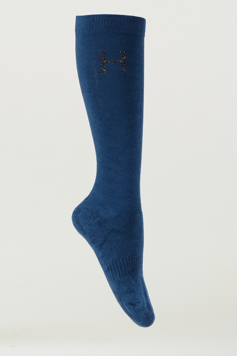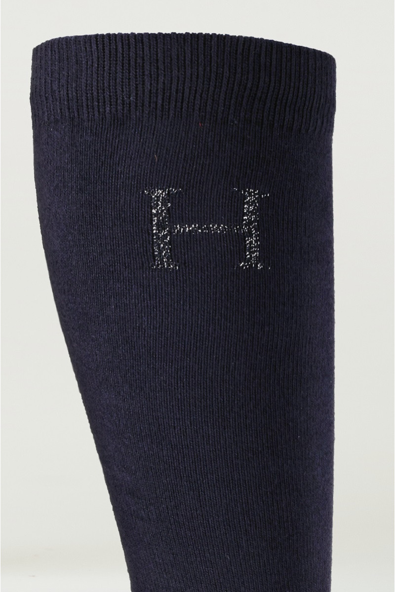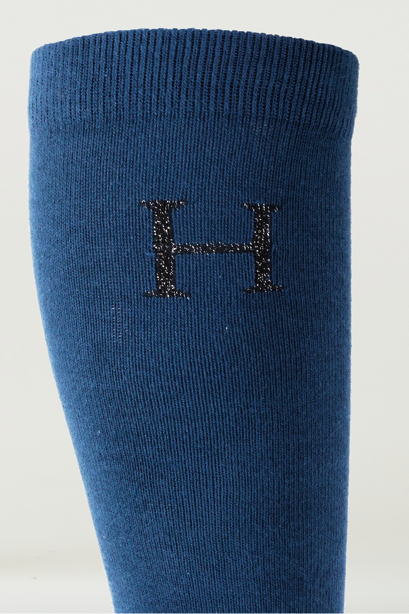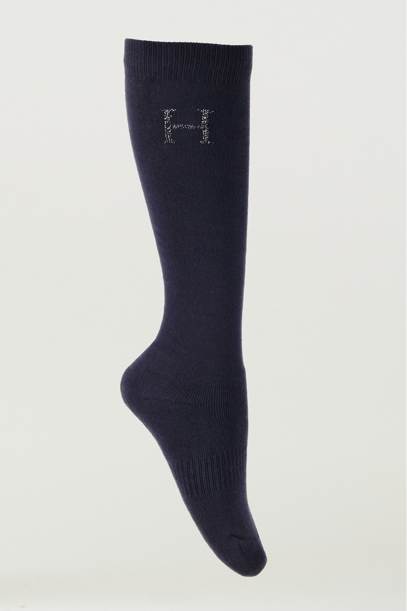 Com brilhantes no H (Harcour) na parte exterior da meia.