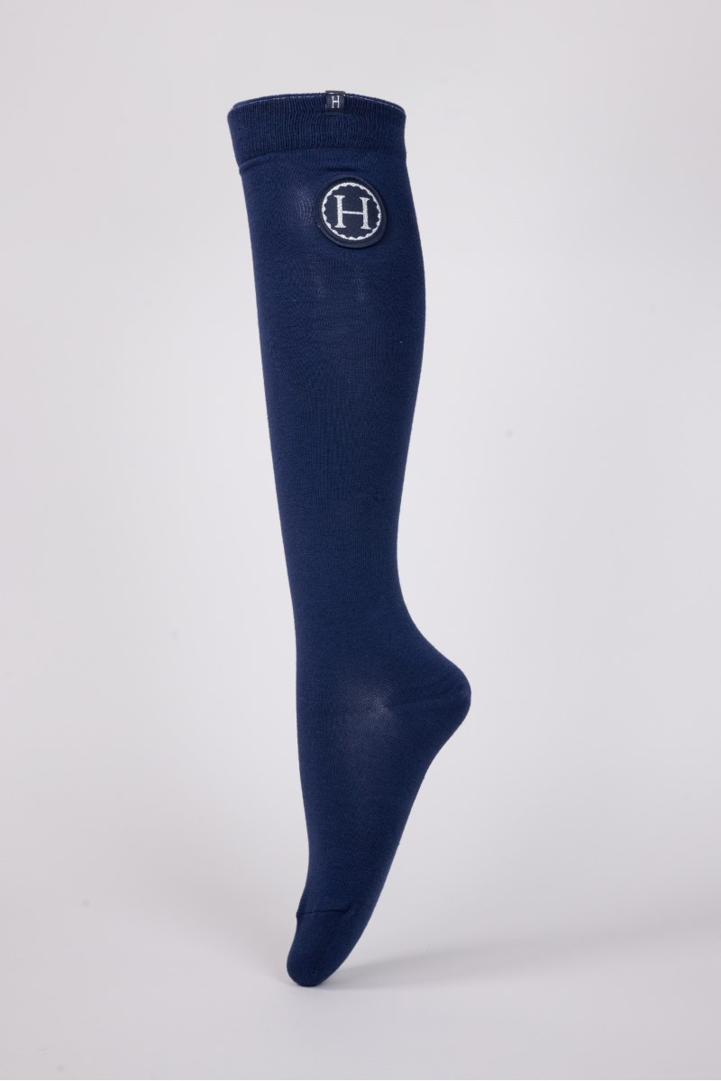 O algodão é reforçado no pé, com parte superior elástica. Incui o logo Harcour na lateral da meia.