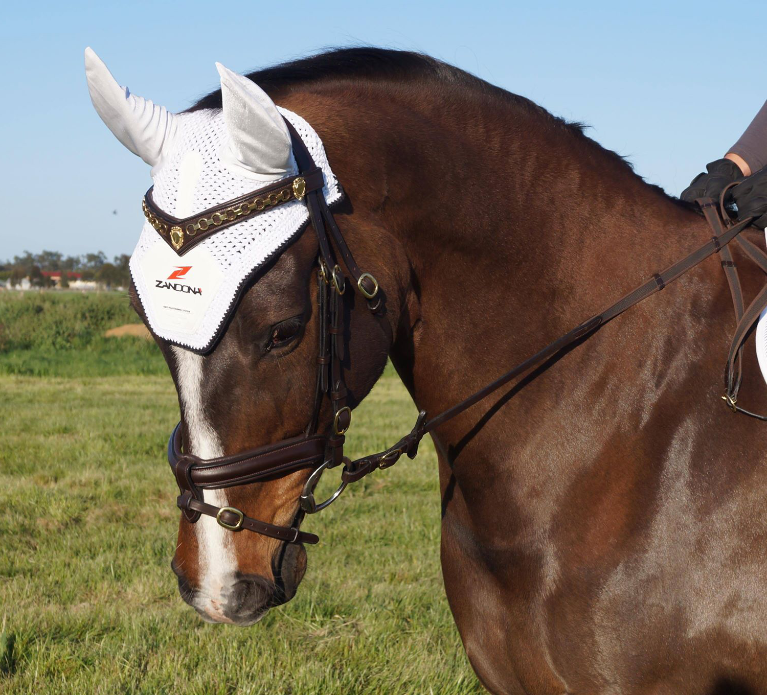 Orelheiras desenvolvidas para proteger as orelhas dos cavalos de moscas e insectos enquanto monta.