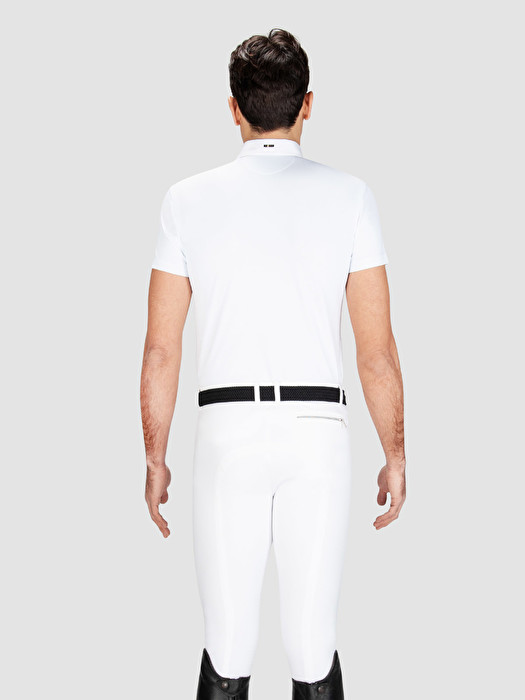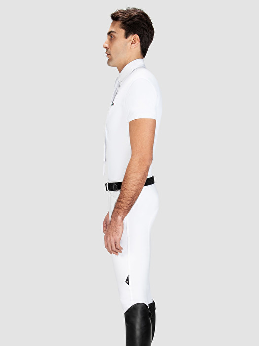 Em tecido técnico X-Premium altamente respirável e elástico, perfeito para garantir o máximo conforto e liberdade de movimentos mesmo nas condições mais adversas. Embelezado com pin para prender a gravata em borracha suave e com as casas dos botões em azul.
