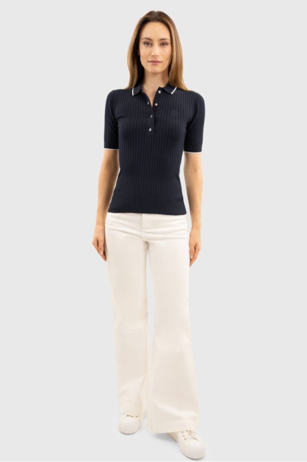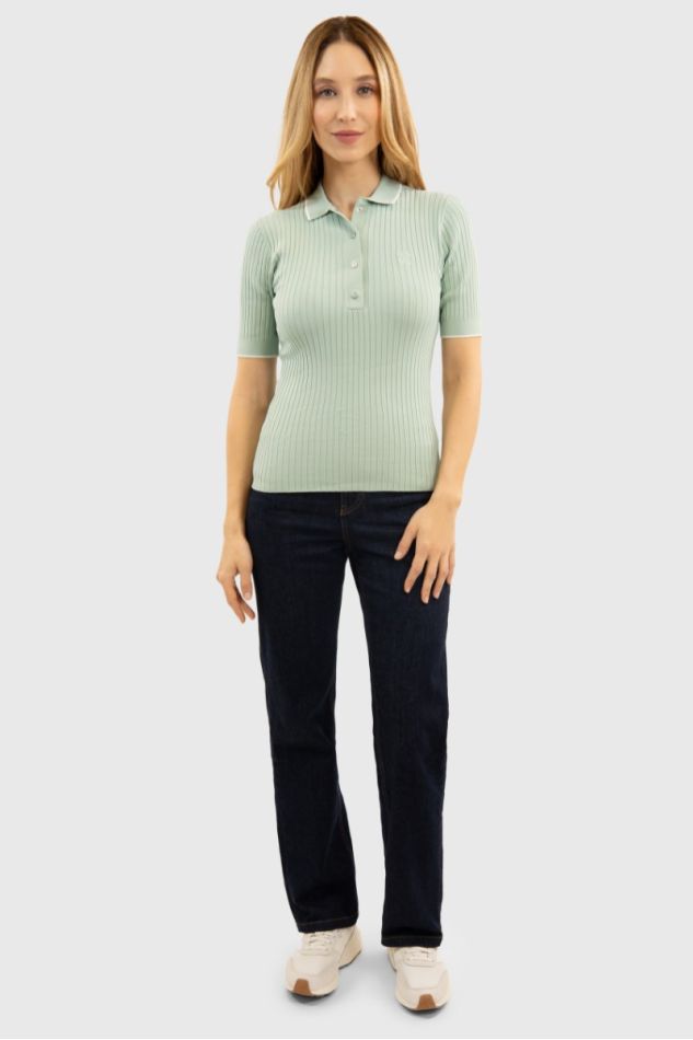 Polo de manga curta com um estilo elegante e versátil. Com corte justo para uma silhueta feminina e elegante.
