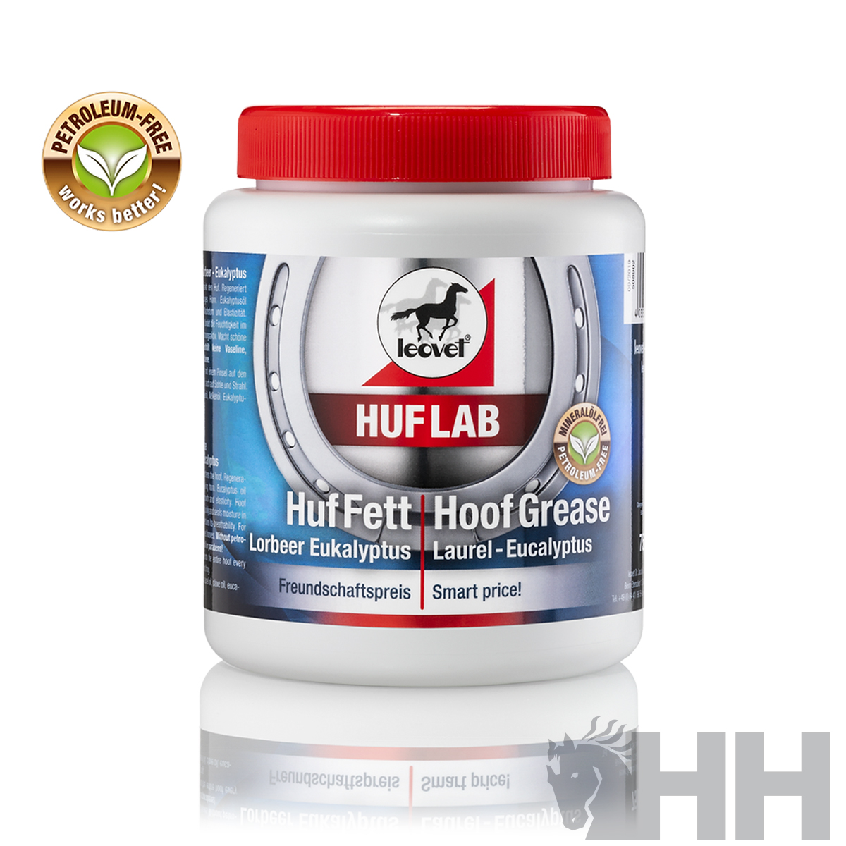 A pomada para cascos LEOVET HOOF LAB tem como base de composição o louro e o eucalipto. Cuida, nutre e fortalece o casco.