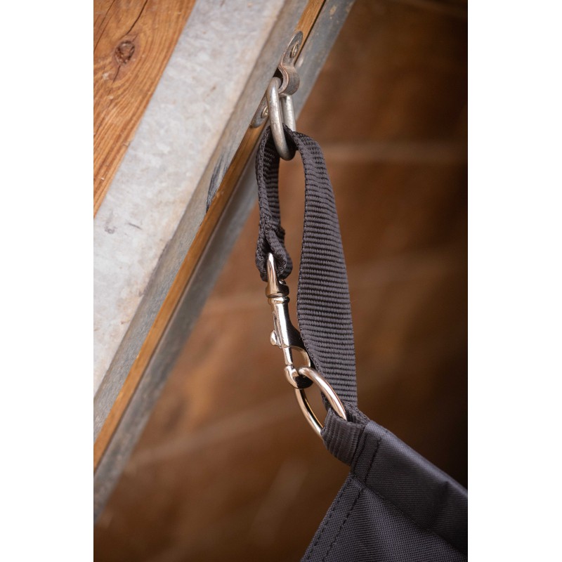 Com quatro correias com mosquetão, instala-se fácilmente. É ideal para melhorar o conforto do cavalo na box, especialmente em dias calorosos, favorecendo a circulação deo ar.