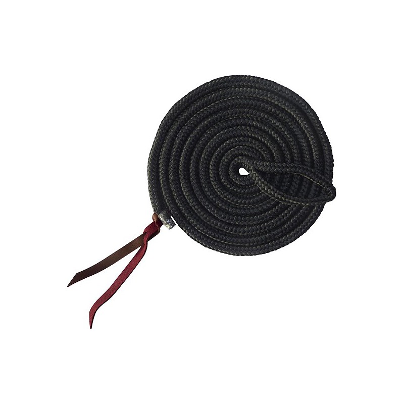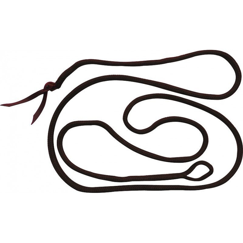 Prisão de equitação natural de polipropileno suave sem mosquetão, com anilha da mesma corda para amarrar ao cabeção numa extremidade e dupla ponta de couro na outra.