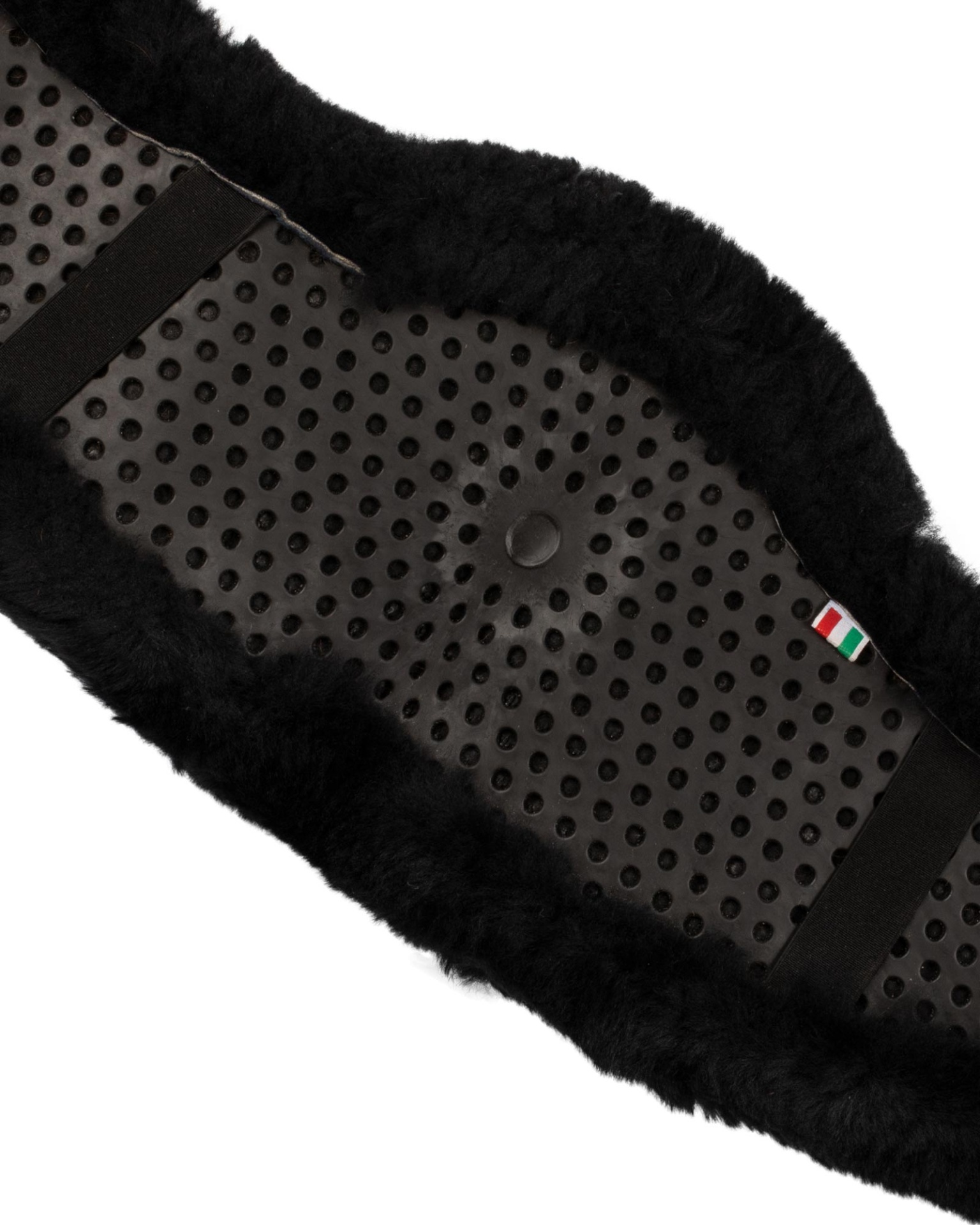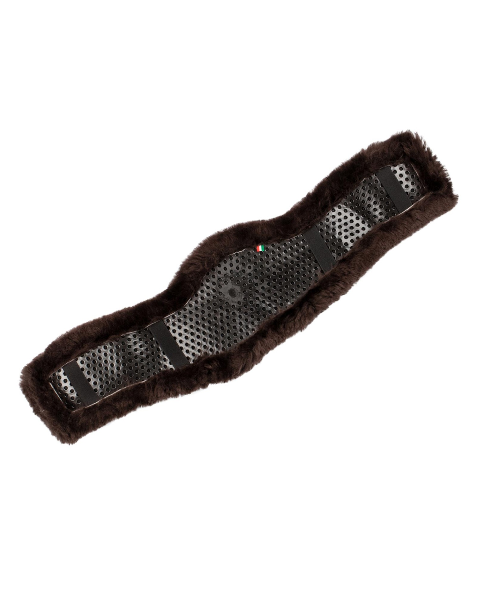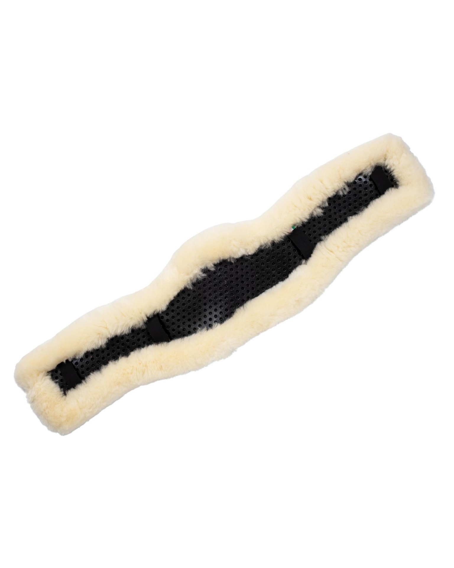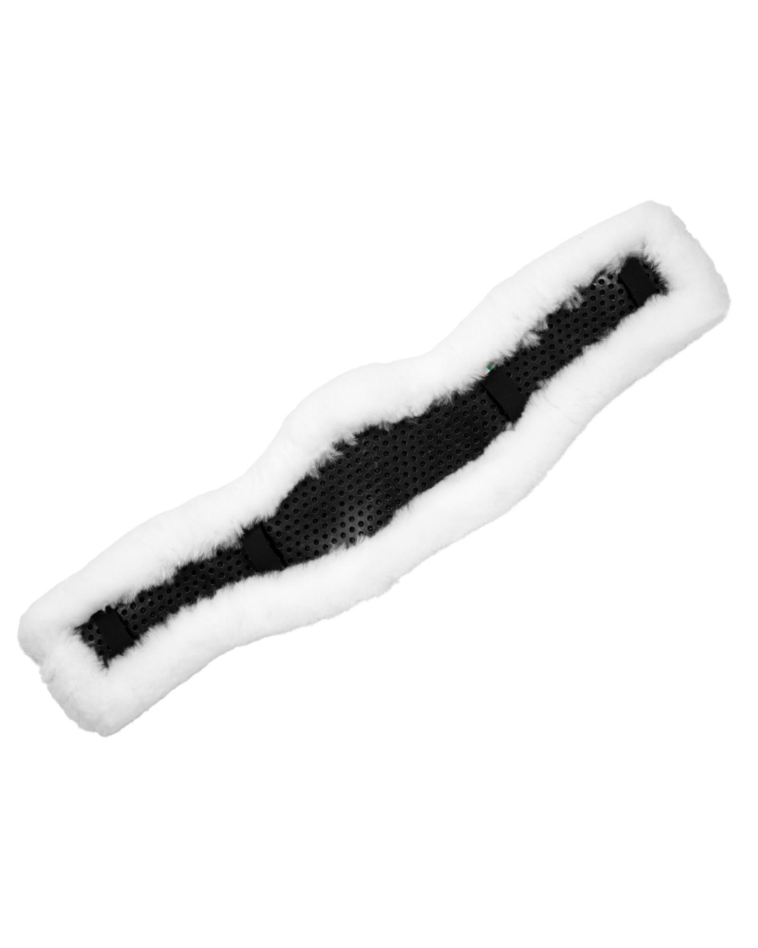 A suavidade, leveza e delicadeza do pêlo de borrego, que oferece a perfeita protecção em áreas de pele sensível combin ado com o gel Acavallo com todas as suas propriedades extraordinárias: anti-deslizamento, absorção de choques, formato anatómico, durabilidade, resistência mas também muito flexível, dando assim liberdade de movimentos e conforto ao cavalo. A espessura do gel é um factor determinante e foin fabricado a pensar na anatomia do cavalo. Baseado em testes extensos, a espessura ideal do interior da cilha é de 5mm. Apenas na zona central, onde a pressão e fricção são maiores, o gel é ligeiramente mais espesso.