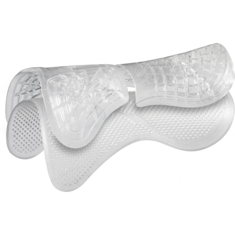 De gel flexível perfurado que permite evacuar o suor enquanto reduz os choques e as vibrações. Contornos lisos a cortar para que se adaptem à morfologia do seu cavalo e à forma da sua sela.