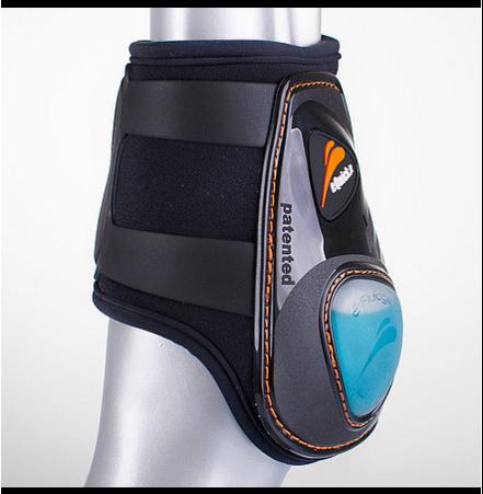 A bolha especial no exterior reduz eficazmente o impacto que o membro do cavalo pode sofrer devido à compressão do ar/gel e à sua capacidade de absorção de choques.