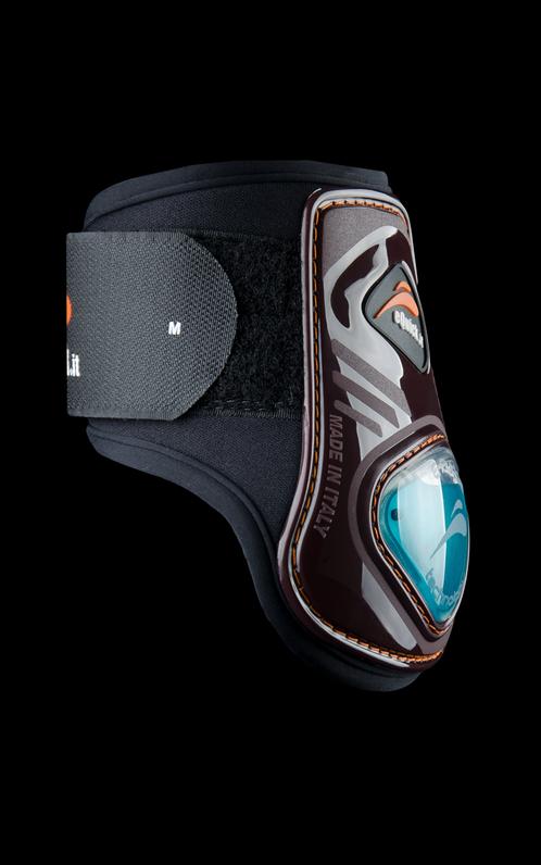 A bolha especial no exterior reduz eficazmente o impacto que o membro do cavalo pode sofrer devido à compressão do ar/gel e à sua capacidade de absorção de choques.