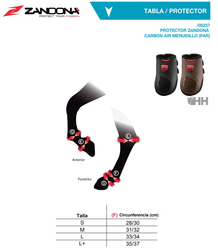 Fibra de carbono por baixo da carcaça para proteger as articulações da fricção externa e melhorar a resistência aos choques. Zona Flex interna para liberdade de movimento. Dispõe de correias elásticas que fecham de maneira segura, com desengate rápido. Ajuste perfeito para a extremidade do cavalo.