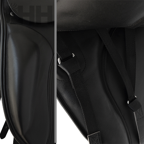 Características: - Assento muito profundo para conseguir a posição mais idónea do cavaleiro. - Sistema muito simples de intercâmbio de pontes de garrote para poder adaptar o selim à morfologia de qualquer cavalo. O selim incorpora de série a ponte nega de 30cm mas pode ser adquirido em separado pontes de 32 e 34cm respetivamente. - Abas de lã tratada com forma alargada para um melhor equilibrio da sela sobre o dorso. - Passador para loros com gatilho de segurança. - Taco anatómico fixado sobre a aba exterior para proporcionar uma posição adequada para as suas pernas. - Sistema de pontas de cilha em V para melhor fixação do selim e sistema de troca de pontas muito simples, em caso de desgaste, facilitando e reduzindo o custo desta substituição caso seja necessária. - Inclui capa protectora de alta qualidade.