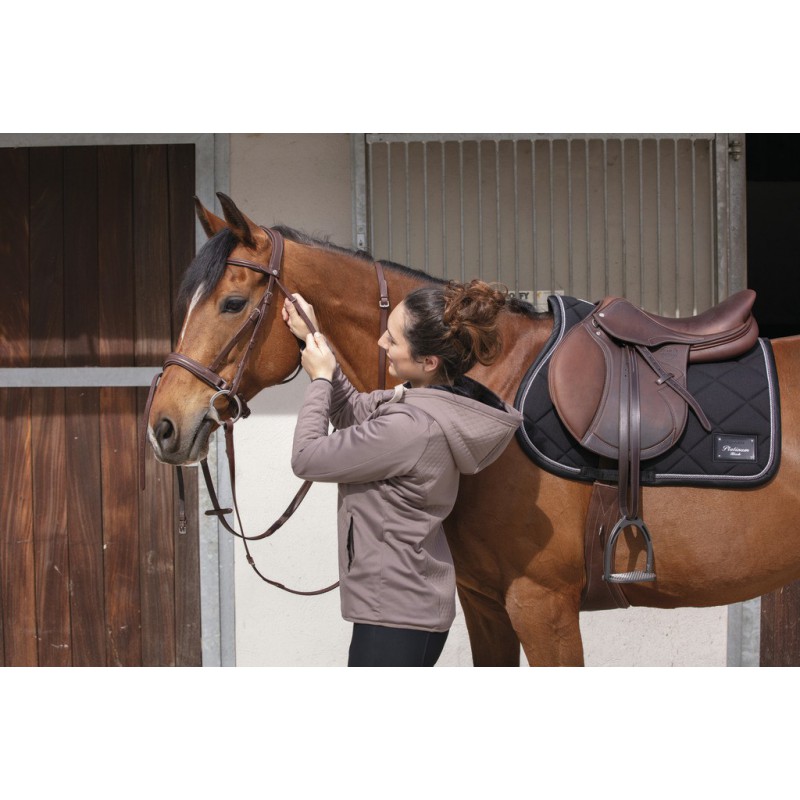 Selim de salto forrada de bezerro e assento semi-oeco. A sua armadura de faia laminada encolada e as suas abas largas proporcionam uma comodidade óptima tanto para o cavalo como para o cavaleiro. O arco de ponte está reforçado, o que evita que se abra ou que se rompa com o passar do tempo. A zona oca do seu assento e o seu excelente equilibrio geral convertem-na numa sela muito boa, tanto para o salto como para a pista.