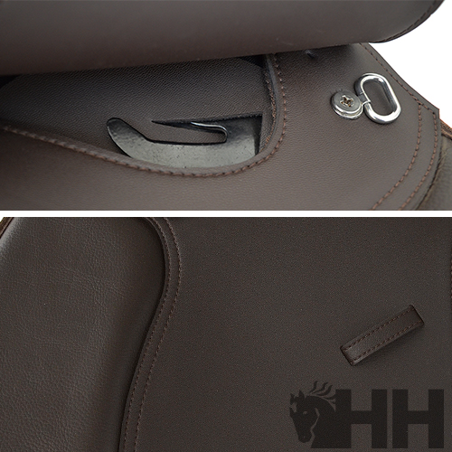 Selim misto fabricado completamente em material sintético muito resistente e de fácil manutenção. A única excepção são as pontas de cilha que são fabricadas em couro autêntico curtido ao cromo.