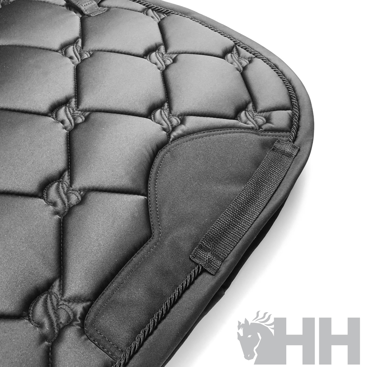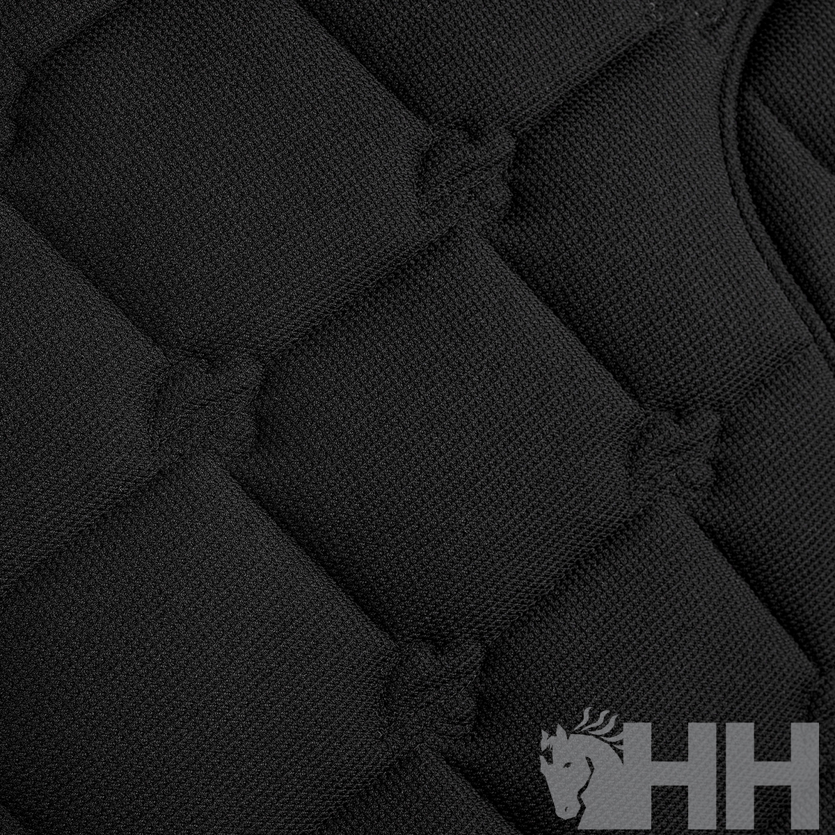 O tecido que absorve a humidade na parte inferior e o centro fabricado em malha respirável com formato anatômico garantem o conforto do cavalo.