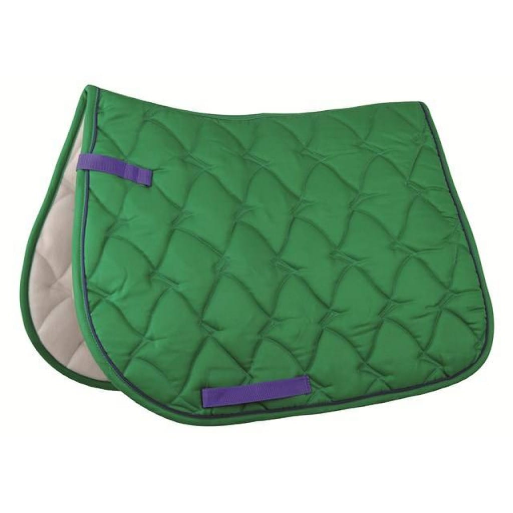 Tapete para sela de cavalo verde acolchoado com fitas roxas