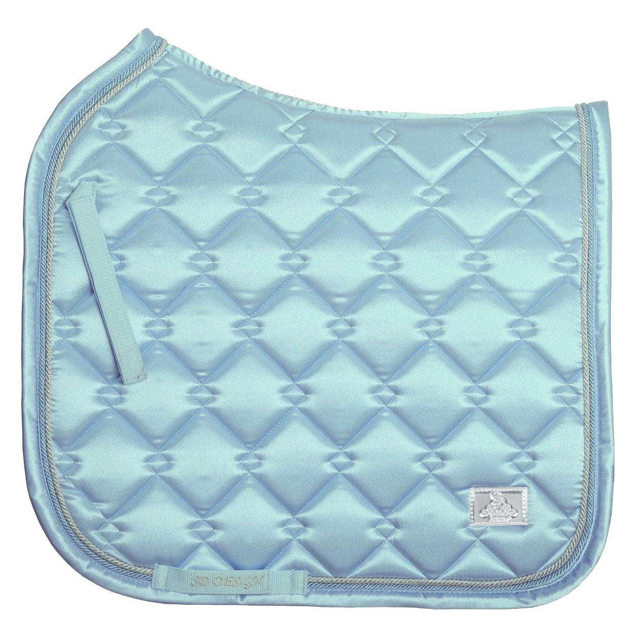 Tapete de sela azul claro acolchoado com padrão de losangos e etiqueta