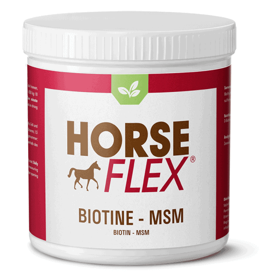 O "Biotin-MSM" da HorseFlex é um suplemento em pó para cavalos, ideal para os cascos, pelagem e pele.