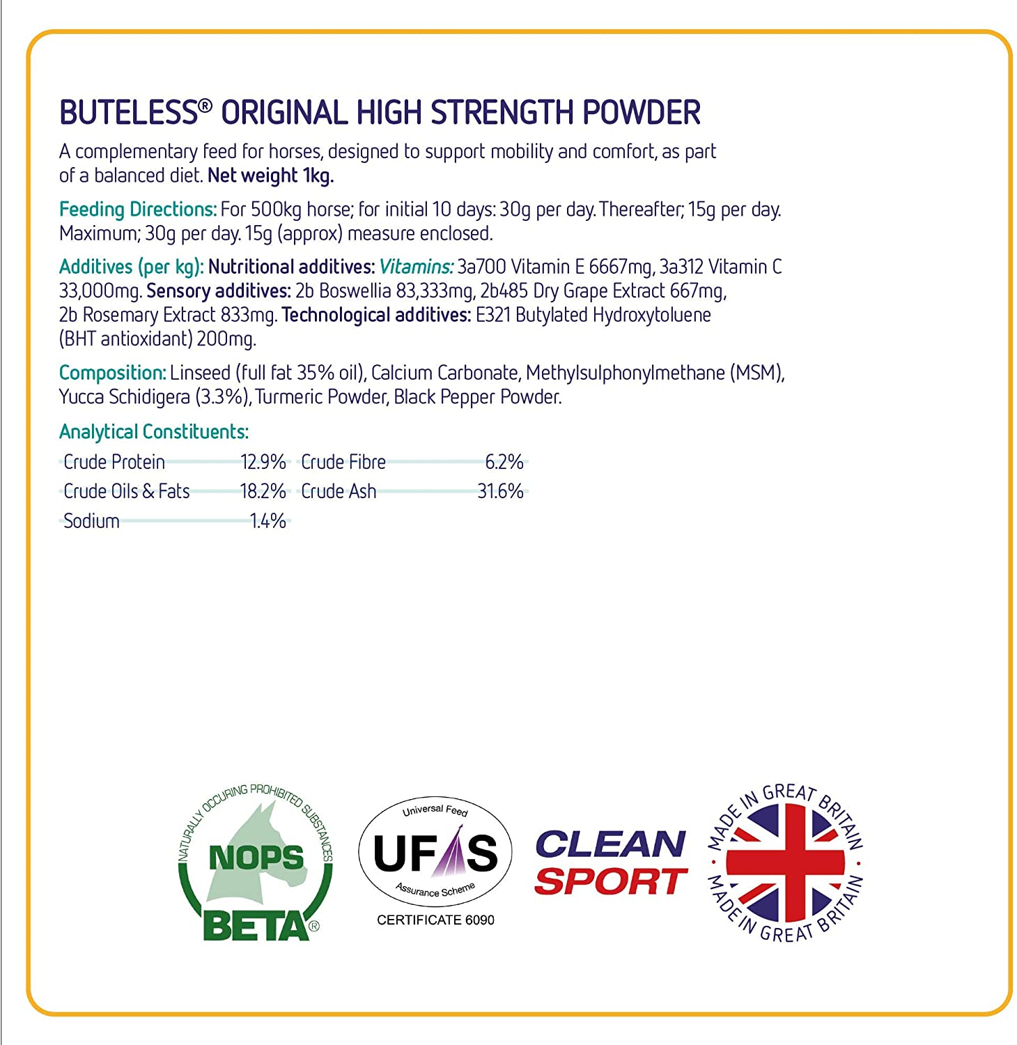 Buteless Original é uma mistura muito saborosa de ingredientes e nutrientes chave provados para apoiar a mobilidade e a comodidade das articulações e dos músculos em todos os cavalos e póneis.