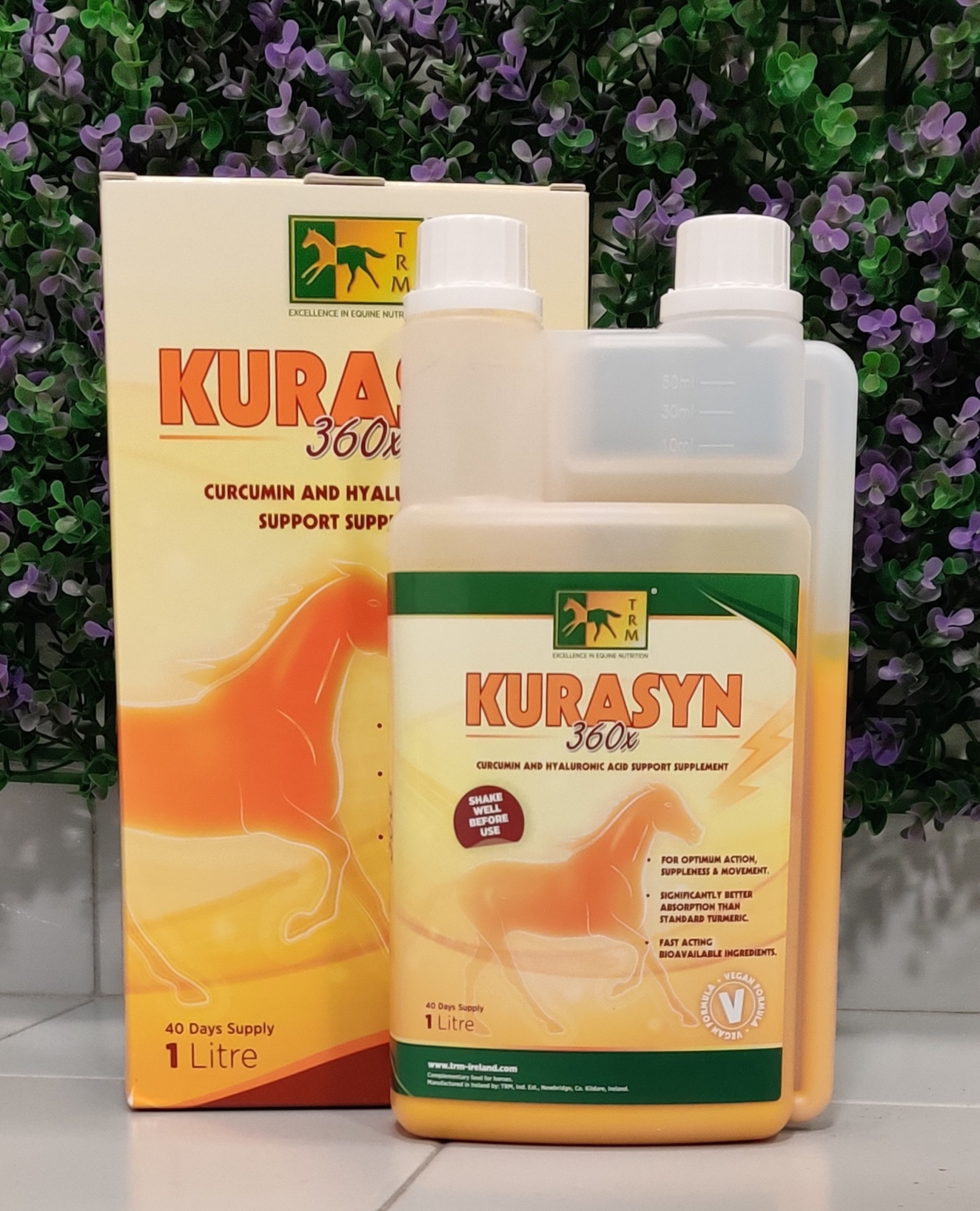KuraSyn 360X é um alimento complementar para cavalos que contém curcumina altamente biodisponível combinada com o ácido hialurónico.