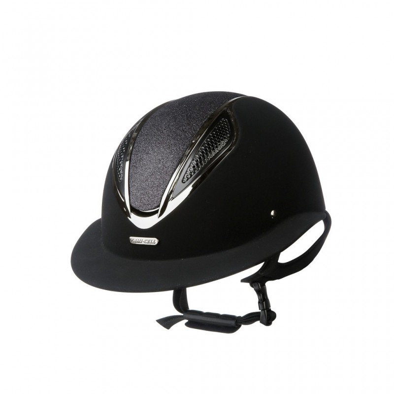 Toque elegante com um bonito acabamento, moderno e ligeiro, muito bem ventilado. Exterior de ABS, interior de EPS, totalmente recoberto de PU com camurça suave, viseira larga. Roleta de ajuste e 2 forros intercambiáveis.