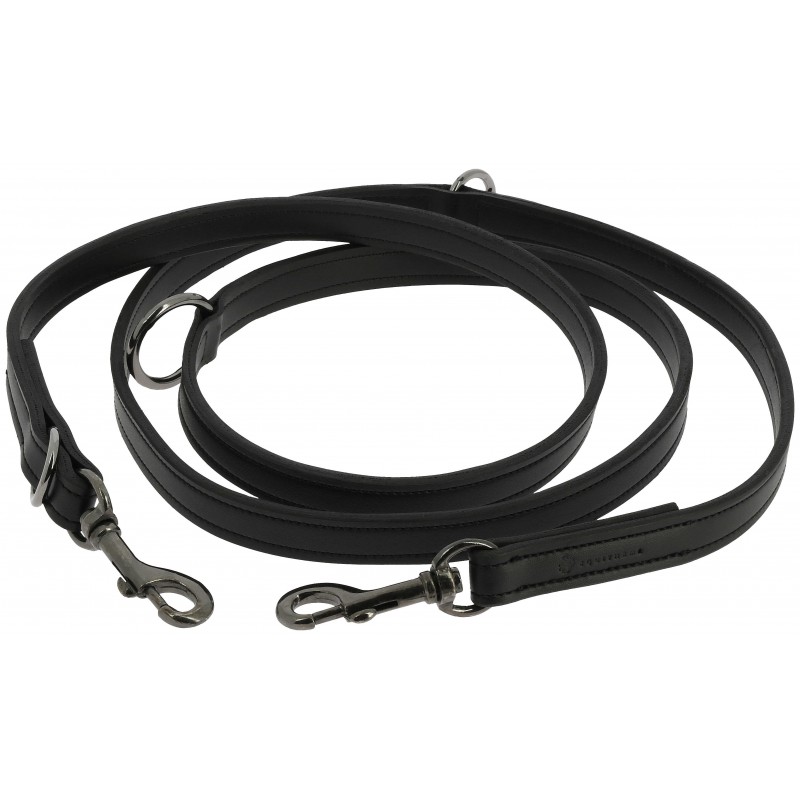 - Pode utilizar-se como trela única curta, media ou longa, ou como trela dupla para 2 cães.